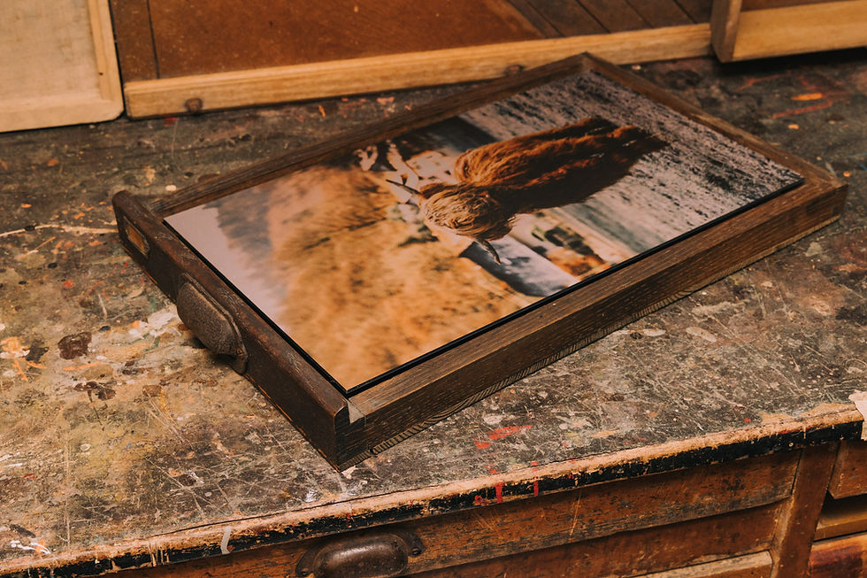 Einzigartige Wandkunst aus alten Schubladen und ausgewählten Motiven.